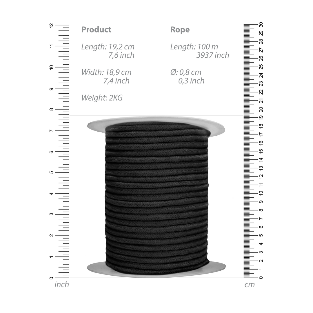 Mit einer Länge von 100 Metern steht dir genügend Seil zur Verfügung, um deine wildesten Bondage-Träume zu verwirklichen! Dieses Seil aus glatter Baumwolle hat einen Durchmesser von 0,8 cm.-
