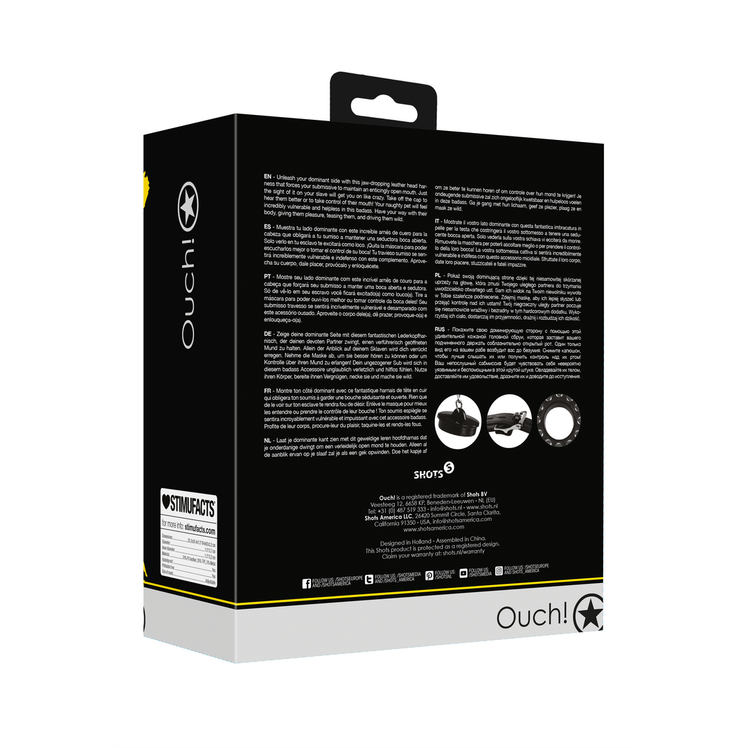 Zeige deine dominante Seite mit diesem fantastischen Lederkopfharnisch, der deinen devoten Partner zwingt, einen verführerisch geöffneten Mund zu halten. Allein der Anblick auf deinem Sklaven wird dich verrückt erregen. Nehme die Maske ab, um sie besser hören zu können oder um Kontrolle über ihren Mund zu erlangen! Dein ungezogener Sub wird sich in diesem badass Accessoire unglaublich verletzlich und hilflos fühlen. Nutze ihren Körper, bereite ihnen Vergnügen, necke sie und mache sie wild.-